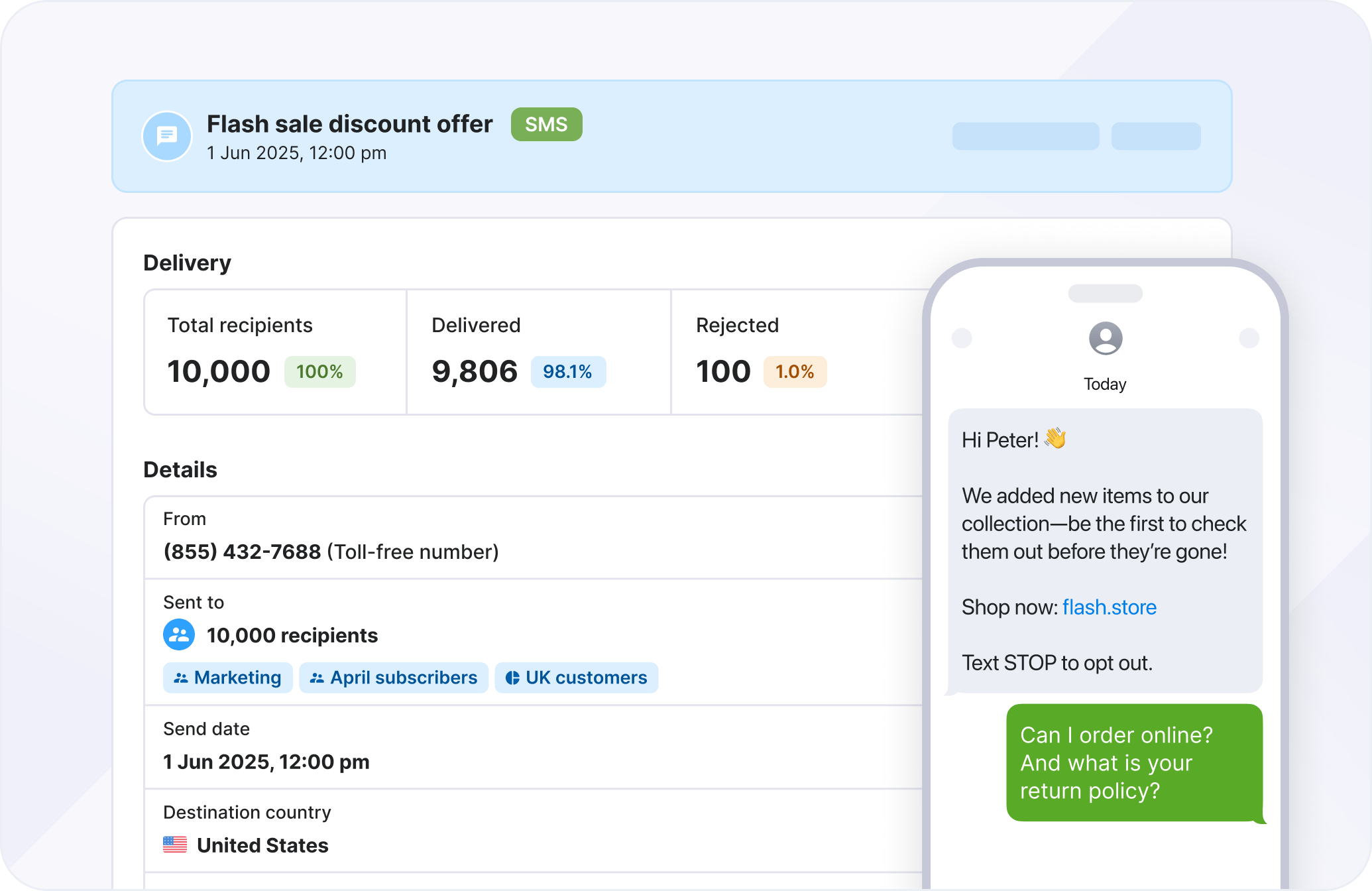 - Send mass text campaigns